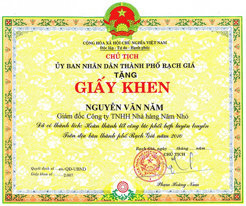 Cty TNHH MTV Nhà Hàng Năm Nhỏ