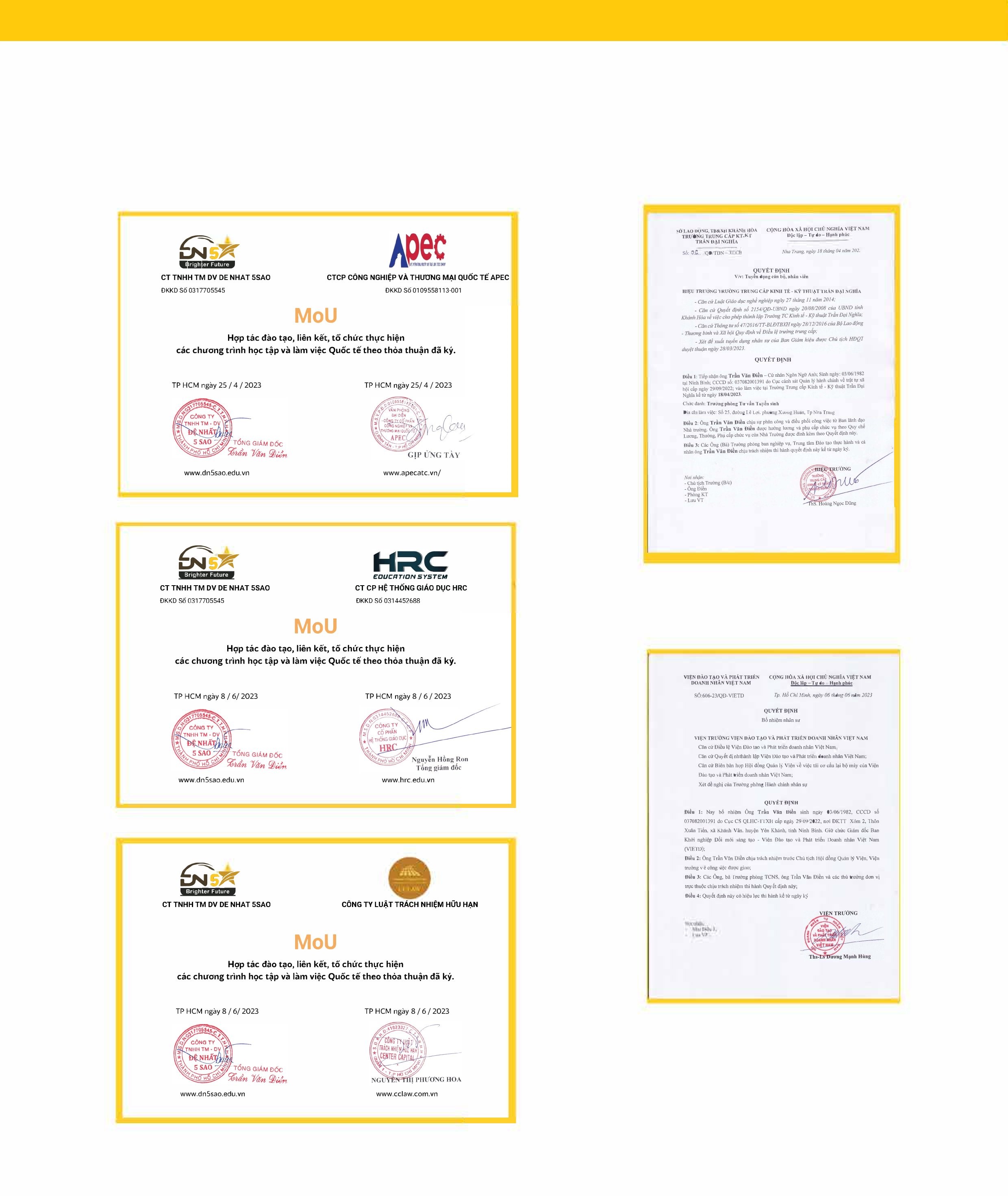 - 2018 – 2023: Tổng giám đốc Công ty TNHH TM – DN Đệ Nhất 5 Sao