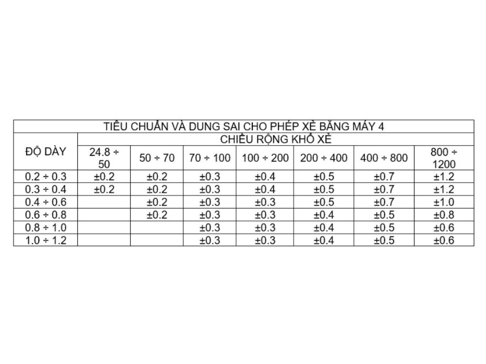 - Dung sai khổ xẻ: từ ±0.2 mm đến ±0.3 mm.
